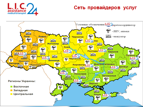 Наличие широкой сети партнерских СТО и эвакуаторов (которая постоянно расширяется); взаимодействие со службами ГАИ, МЧС, МВД, медицинскими учреждениями является гарантией того, что Вы и Ваш автомобиль получат помощь и поддержку в любой точке Украины.